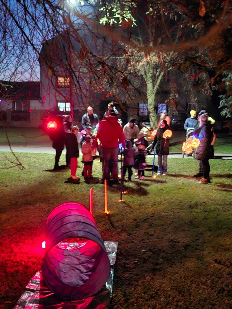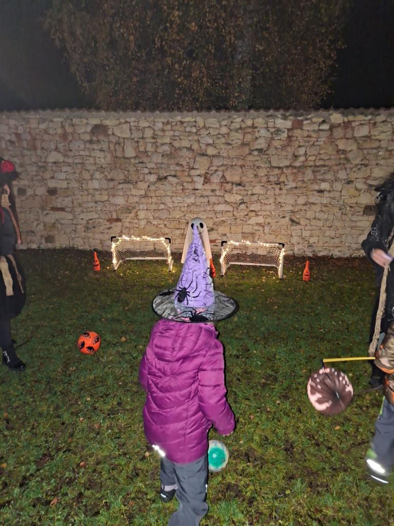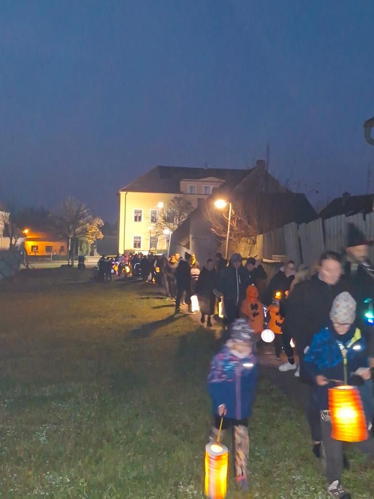 U rybníčku jsme měli doprovodný program – 5 stanovišť s halloweenskou tématikou. Děti hledaly lektvary, prosvěcovaly obrázky strašidelných postav, hádaly hádanky u upíra, mířily na bránu ducha a musely prolézt strašidelným tunelem. Na cestě dětem svítila světýlka a lampióny a tak se nikdo tmy nebál. Na konci průvodu si děti vytáhly balíček s odměnou a dostaly diplom. Šikovné maminky napekly samé dobroty, abychom se společně posilnili a velkou oporou nám byli i hasiči, kteří jistili bezpečný přechod přes silnici. Věříme, že si akci užili nejenom děti, ale i rodiče i učitelé.